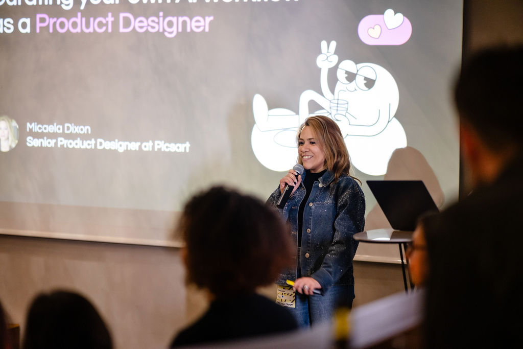 ๐ค Micaela Dixon: Senior Product Designer at Picsart who shared her insights on using AI to curate your own workflow. By walking us through her own toolkit and workflow, Micaela shared how she separates AI noise from real, practical action - helping us to move away from chasing tools or trends, and towards workflows that actually work.